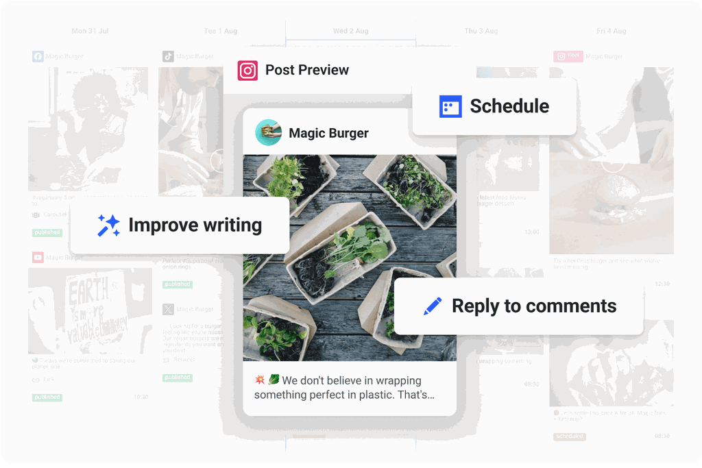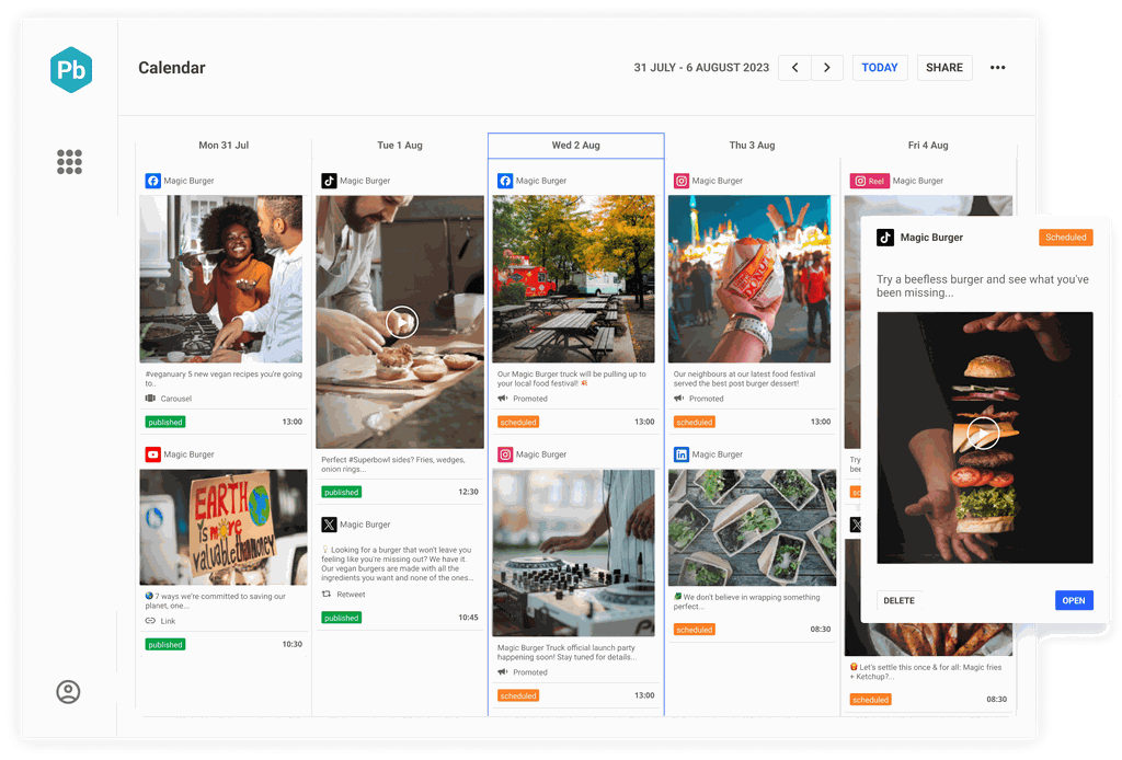 Manage channels, teams, workflows, approvals, and campaigns and ensure brand alignment and stellar quality in one collaborative content calendar.