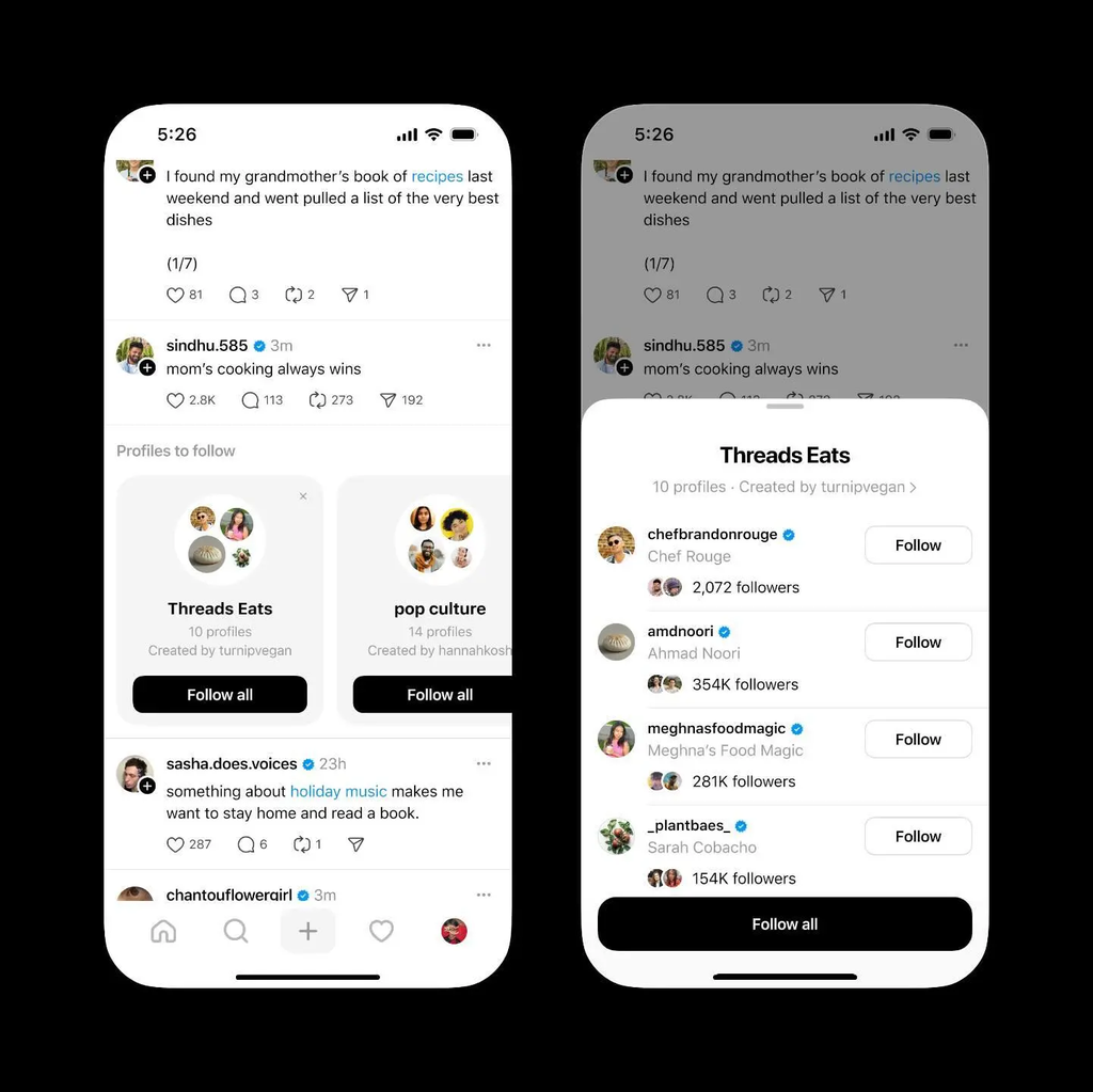 Threads has launched a new feature called Profile Collections, designed to help users explore accounts that align with their interests. These curated collections appear during sign-up and are also accessible on the For You feed, making it easier to discover engaging content.