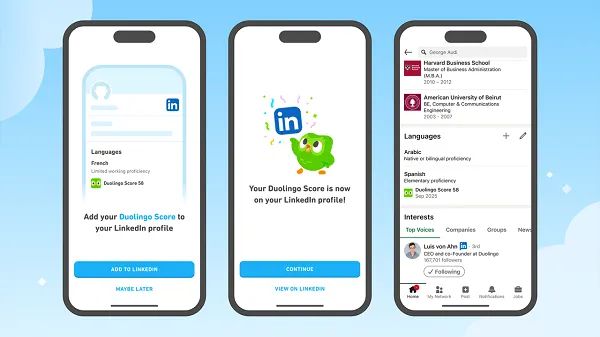 LinkedIn has partnered with Duolingo, enabling users to display their Duolingo language scores directly on their LinkedIn profiles. Now, when adding a second (or third) language to your profile, you can back it up with your Duolingo fluency score.