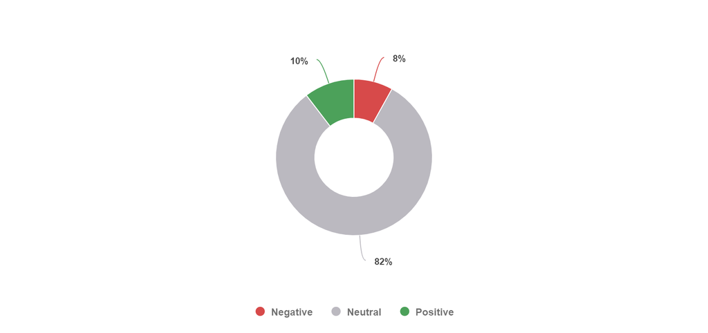 Da notare come, escluse le menzioni di carattere neutrale, la divisione tra menzioni positive e menzioni negative rimane bilanciata, nonostante una leggere tendenza ad avere più menzioni positive.