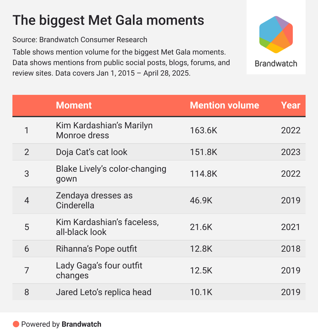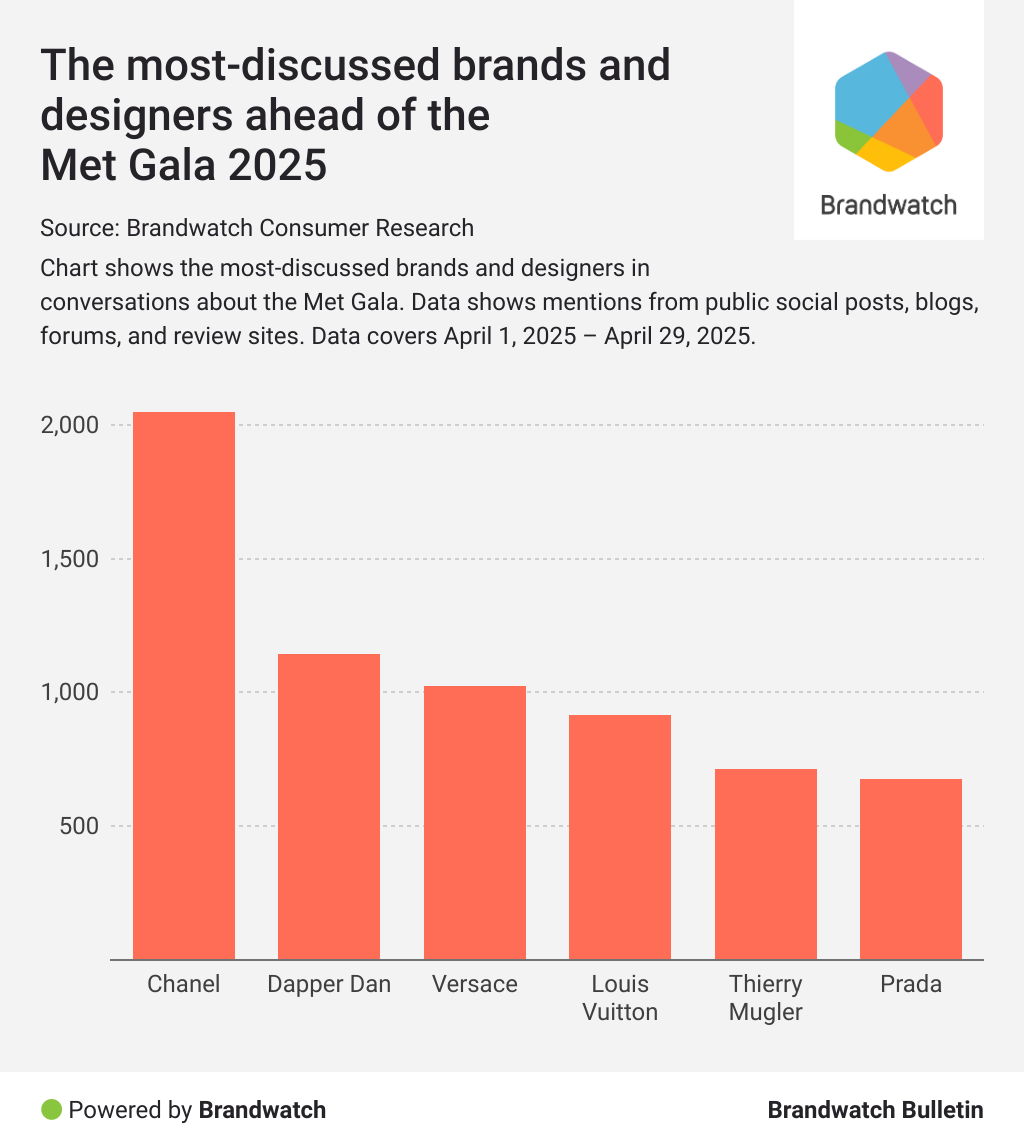 So, what was trending? We used Brandwatch Consumer Research to discover the biggest brands and designers ahead of the Met Gala 2025.
