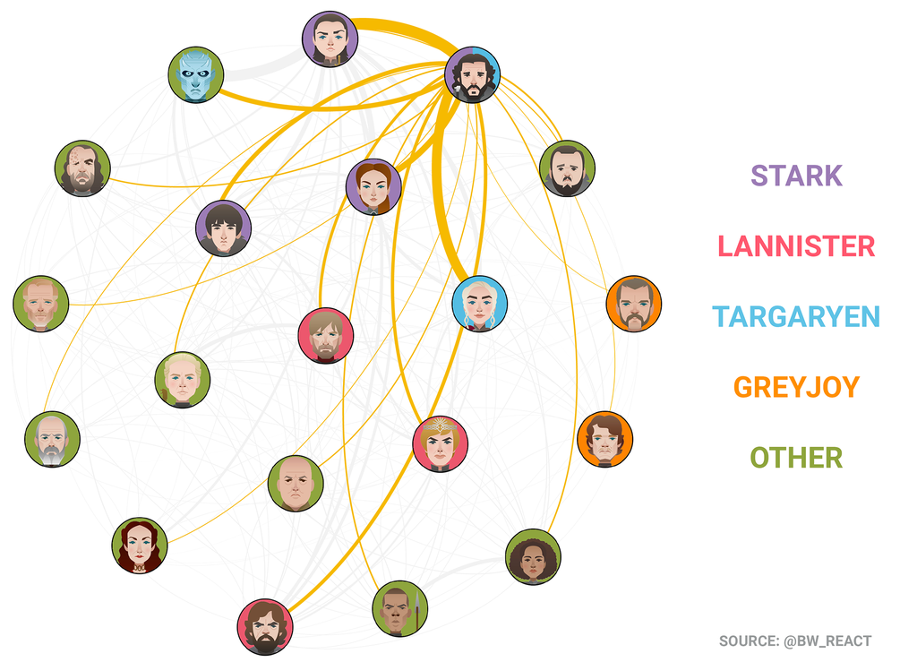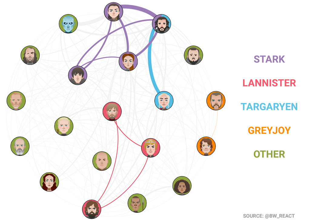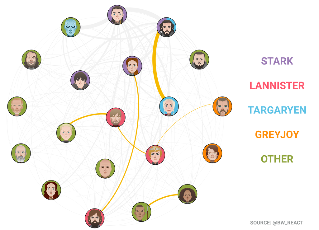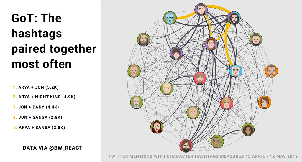 Do our tweets reflect alliances or bitterness between characters in the show?