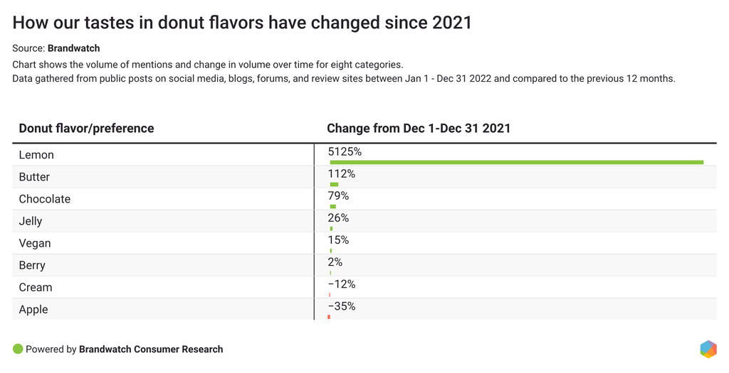 We ranked flavors and ingredients based on the number of times each keyword appeared in conversations between January 1 and December 31 2022.