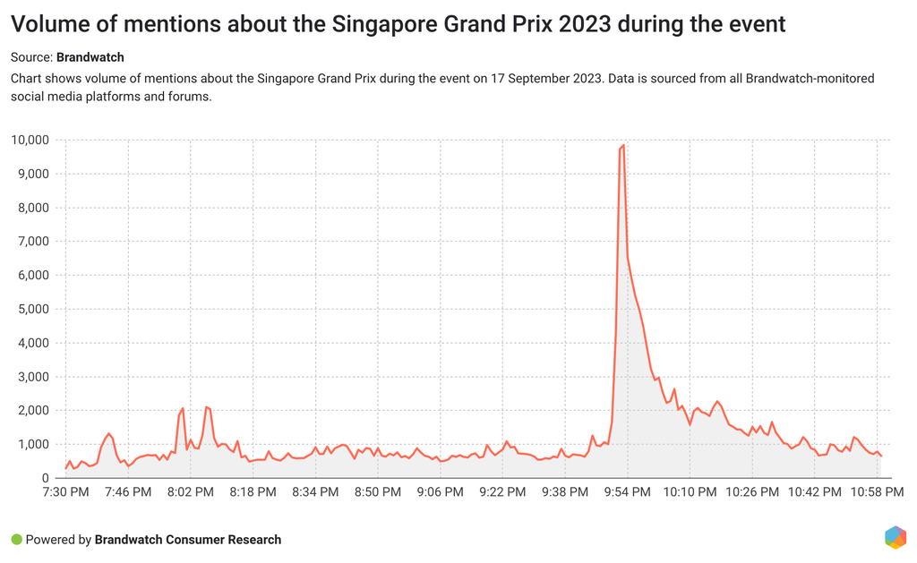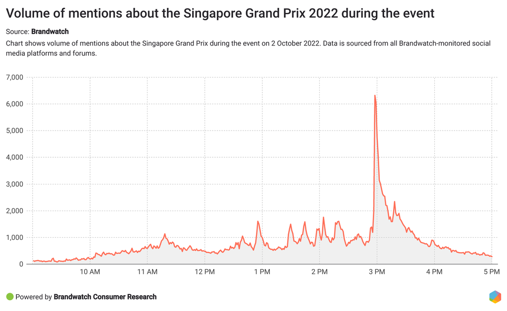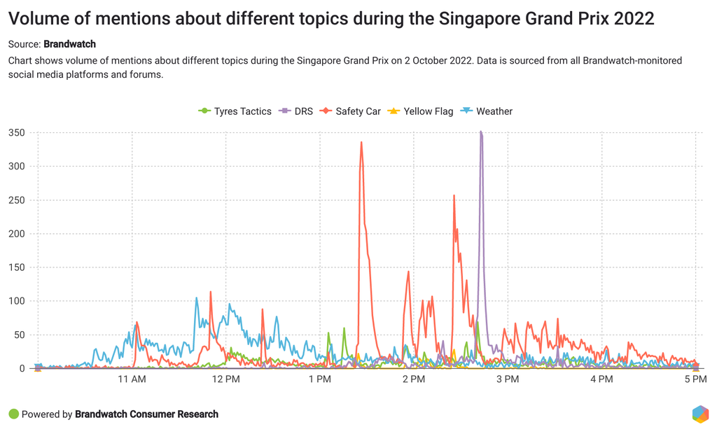 Formula 1 isn’t entirely about the drivers or teams, and 2022's Singapore Grand Prix was no different. From a weather-delayed start, race conditions, and safety cars, there were a few hurdles that fans discussed before and during the event. Now let’s look at the mentions of these topics in correlation to the race.