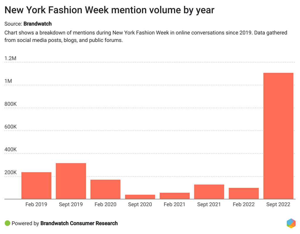 This year, September’s NYFW ran from September 9 – 14. Receiving over 1 million online mentions during the event, this year’s New York Fashion Week has been the most discussed since 2016. So, what got fans talking?