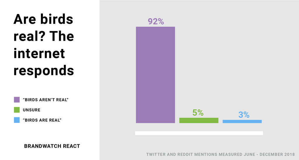 As part of Fake News Week on the blog, the Brandwatch React team uses powerful social intelligence tools to conduct a highly scientific investigation into the theory that birds aren't real.