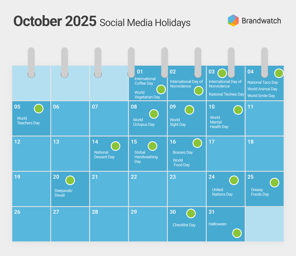 Whether you're celebrating diversity, enjoying a cup of coffee, or diving into the realm of tacos, there's something for everyone this October. Keep these holidays in mind as you craft and optimize your social media content calendar.
