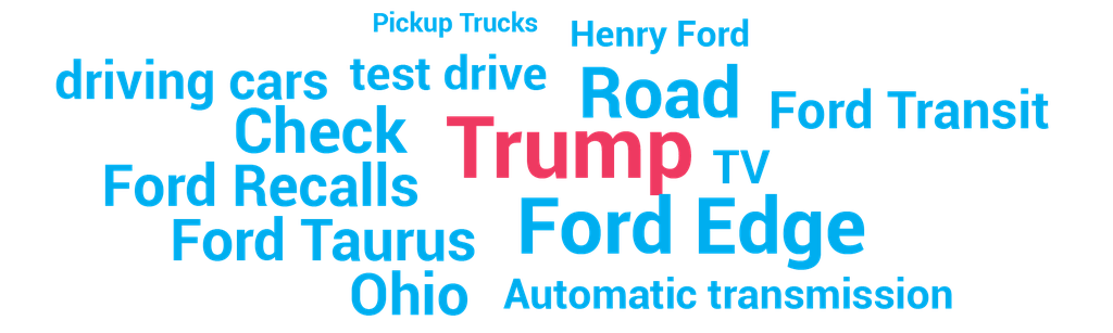 Using Brandwatch Analytics to look back at the online reaction to Ford’s announcement, Trump’s criticism was so loud over the past year that he is the most prevalent topic within all social discussion about the Ford brand.