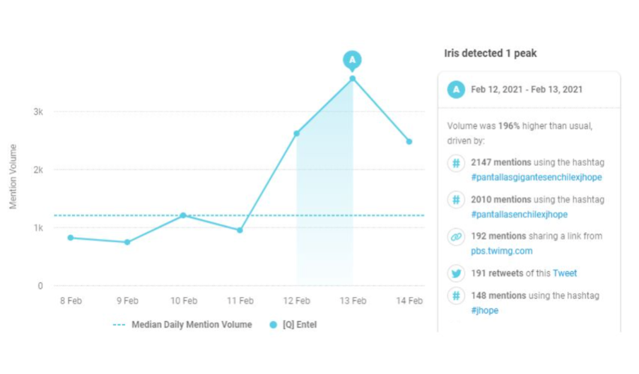 It was then, between February 12 and 13 in 2021, that Entel discovered a 196% increase in its social conversation, a record number for the company.