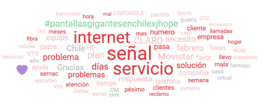 Before Entel started using social listening data, word cloud filtered by sentiment would only surface the problems that consumers usually discuss online in relation to telecom services. Typically, that would be about not having a reliable signal or service, internet outages, or similar topics.