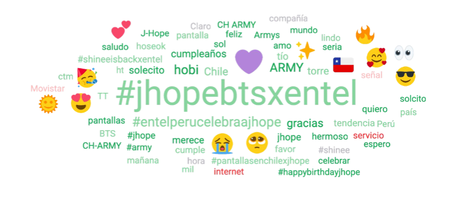 Entel published five posts on Twitter with the hashtag #JHopeBTSxEntel and challenged the band's fans to turn this hashtag into a trending topic on the platform. And in return, the company promised J-Hope's fans to display the birthday message to the singer on the big screen of the Entel Tower. These were some of the results the Entel team achieved with the #JHopeBTSxEntel challenge:
