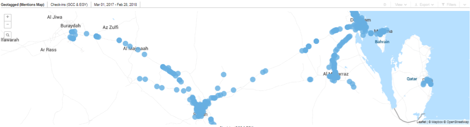 When hug took a closer look at the mentions associated with the check-in data, the team found that nearly half the check-ins were people arriving from Saudi Arabia.