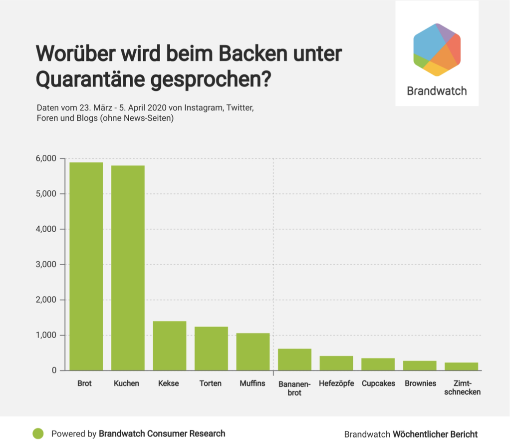 Des Weiteren fällt ein großer Anstieg bei den Gesprächen zu Hefezöpfen (+207%) und Bananenbrot (+171%) auf. Das hat zum einen saisonale Gründe: Karottenkuchen und Hefezöpfe werden gerne im Frühling und zu Ostern gebacken.