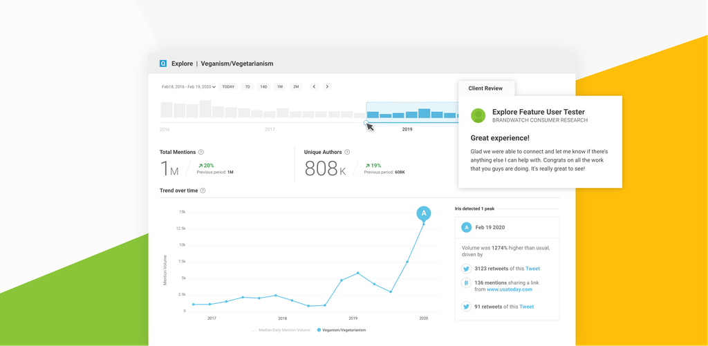 Mit Consumer Research erhalten Sie Zugang zu tiefgehenden Verbraucher-Inisghts aus 100 Mio. Online-Quellen und über 1,4 Mrd. Posts.