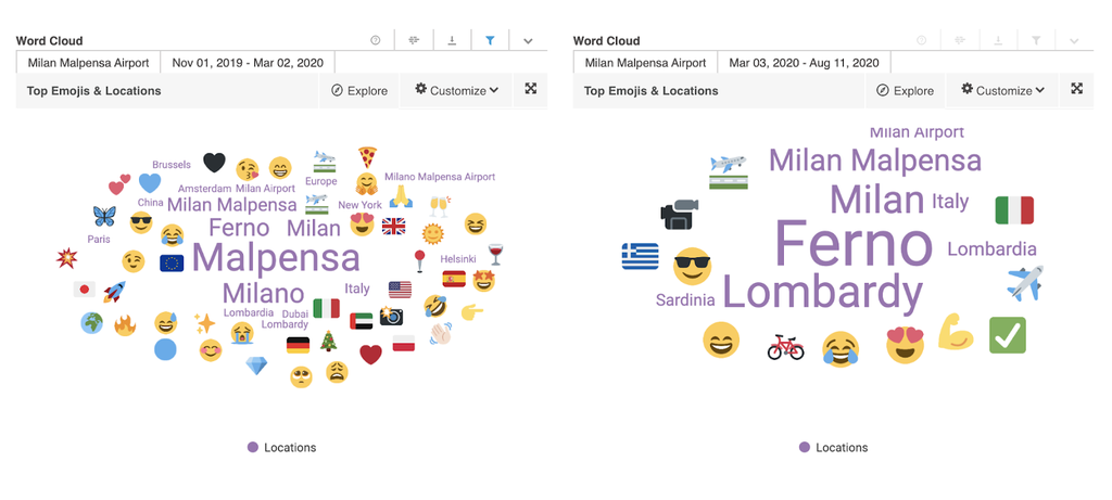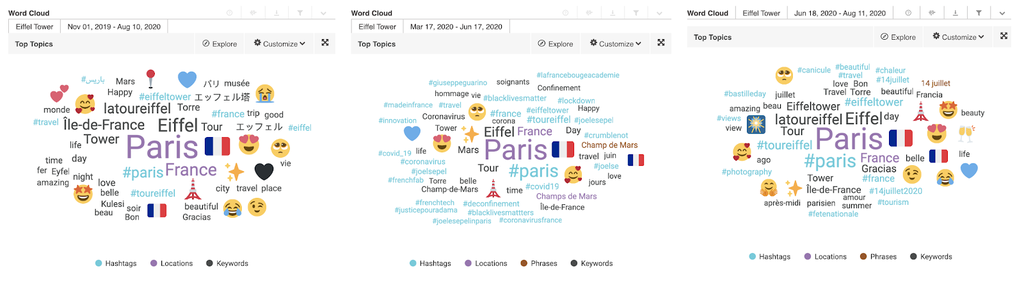 Wie sehen die Social-Media-Gespräche aus bekannten Standorten vor, während und nach dem Lockdown aus?