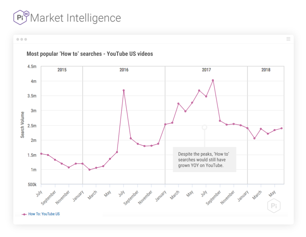 - Howto-Suchen zu Gamingthemen hatten auf Google und YouTube einen Höhepunkt im Juli 2016, als PokemonGo veröffentlicht wurde – auch wenn nur einige Suchen mit „PokemonGo“ verwanden Suchbegriffen diese Kategorie bildeten