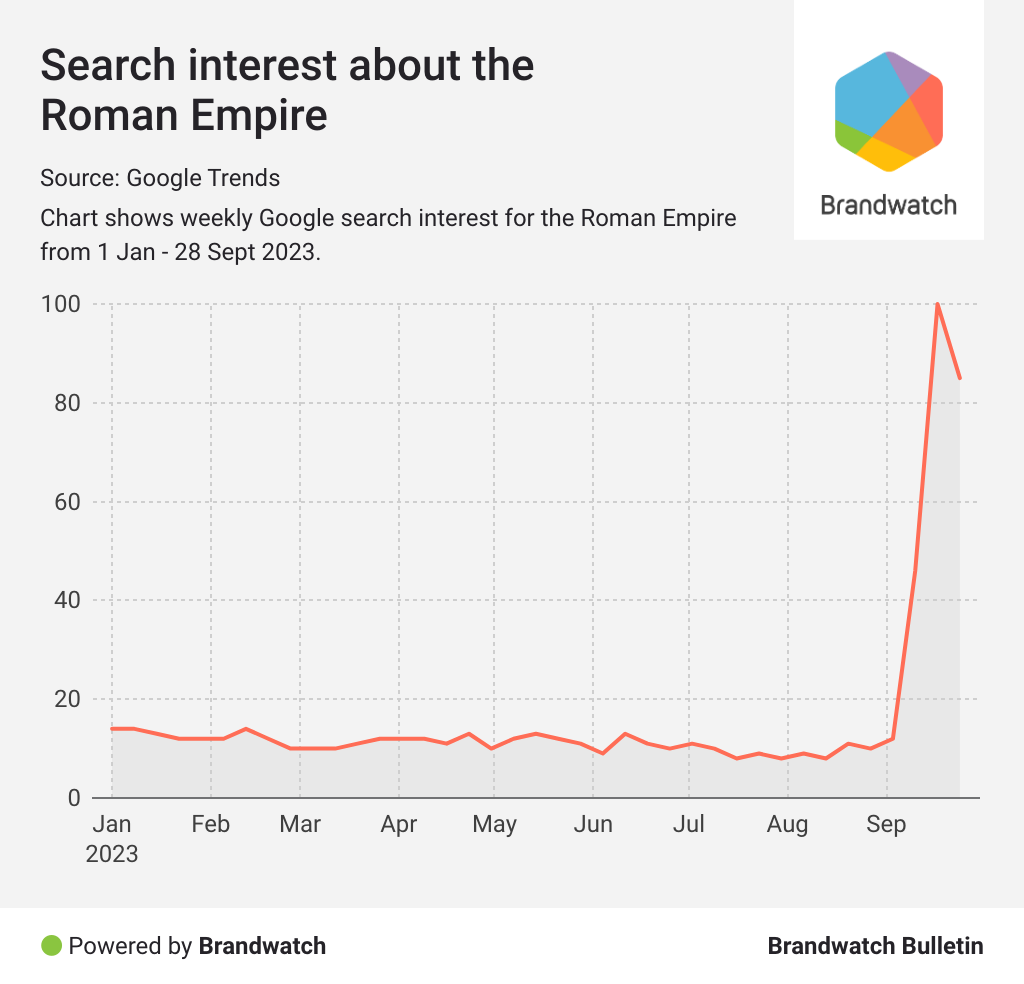 Die Marken, die in der Lage sind, solche wachsenden Trends mit ihrem Publikum zu verknüpfen, werden immense Vorteile im Hinblick auf das Engagement auf ihren Social Media-Kanälen sehen. Ob es nun so einfach ist wie ein Kommentar zu einem TikTok-Trend oder so gewagt wie ein Verkauf zu einem Trendthema - wie z. B. Flüge nach Rom - Marken, die schnell auf diese Trends reagieren, werden sich von Marken abheben, die dies nicht tun.Es ist wichtig, auf diese Trends frühzeitig zu reagieren. Die Implementierung eines Social Listening Tools in Ihre Markenstrategie, um am Puls der kommenden Trends zu bleiben, kann unglaublich hilfreich sein. Mit sofortigen Berichten, KI-gestützten E-Mail-Benachrichtigungen und leistungsstarken Trendanalysen kann Brandwatch helfen. Und so geht's.