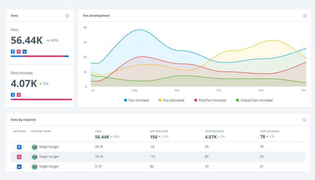 - Engagement-Statistiken: Wie sieht Ihr durchschnittliches Engagement aus, einschließlich Likes, Kommentare, Saves oder Erwähnungen? Sie können ein Tool zur Verwaltung sozialer Medien verwenden, um diese Analysen an einem Ort zu finden.