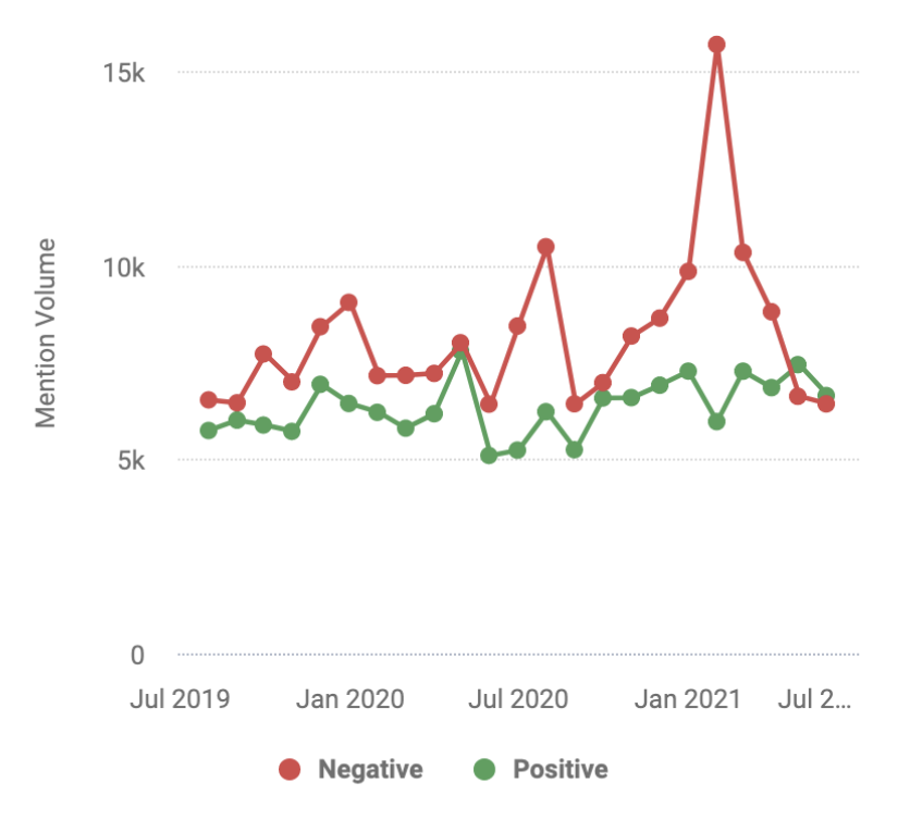 Es ist kein Geheimnis: Unibewerbungen sind eine stressige Angelegenheit. Wir haben das Sentiment rund um die Gespräche über Unibewerbungen untersucht und konnten sehen, dass die negativen Erwähnungen im Jahr 2021, im Vergleich zu 2019 und sogar 2020 dramatisch zugenommen haben.