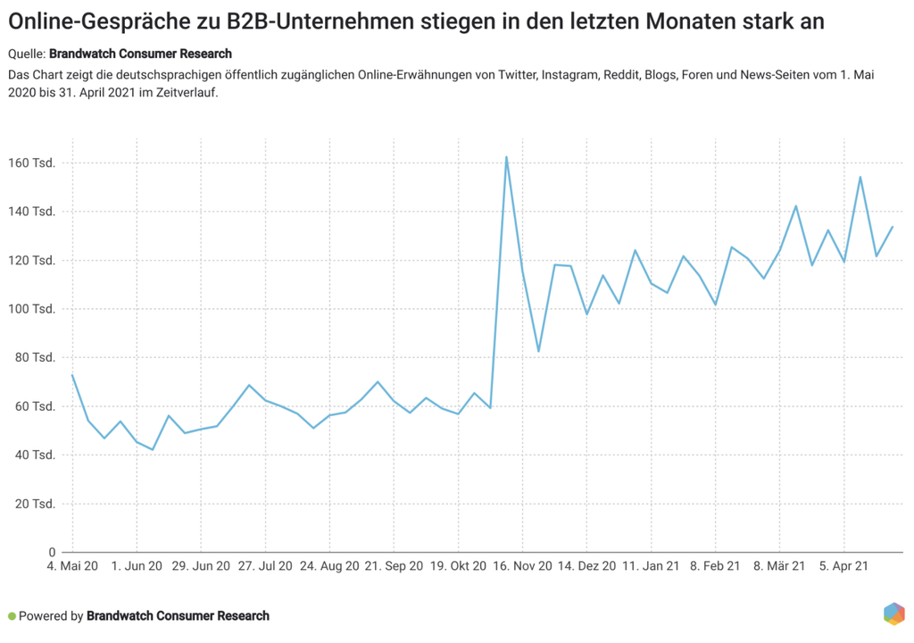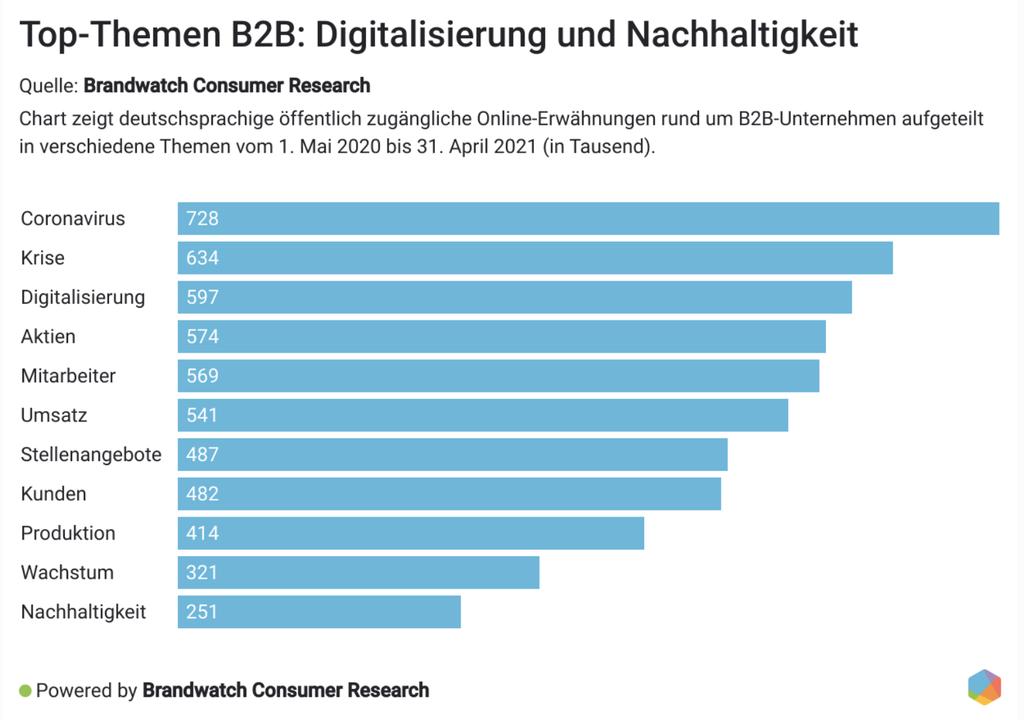 Wir haben über 4,5 Mio. Online-Erwähnungen zu über 300 B2B-Unternehmen aus 13 Branchen untersucht, um die größten B2B-Trends für 2021 zu identifizieren