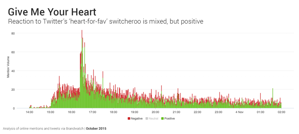 Twitters „Sterne zu Herzen“ lässt die Plattform mehr wie Facebook erscheinen, was nicht zwangsläufig schlecht sein muss. Was aber genau passieren wird, lässt sich nicht vorhersagen. Unsere Daten zeigen, dass diese relativ kleine Änderung die Nutzer nicht vertreibt.