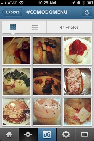 Comodo ermutigt seine Gäste ihr Essen vor dem Verzehr zu instagrammen und mit dem Hashtag #comodomenu zu versehen. So können zukünftige Kunden sehen, wie das Essen aussieht, bevor sie bestellen oder das Restaurant besuchen.
