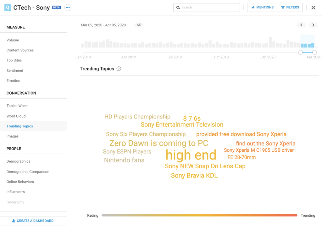 Um zu verstehen, wie schnell sich die Gespräche rund um Ihre Marke ändern und welche Trends sich abzeichnen, können Sie Explore anwenden und so sehen, welche Themen gerade beliebt sind oder welche abnehmen.