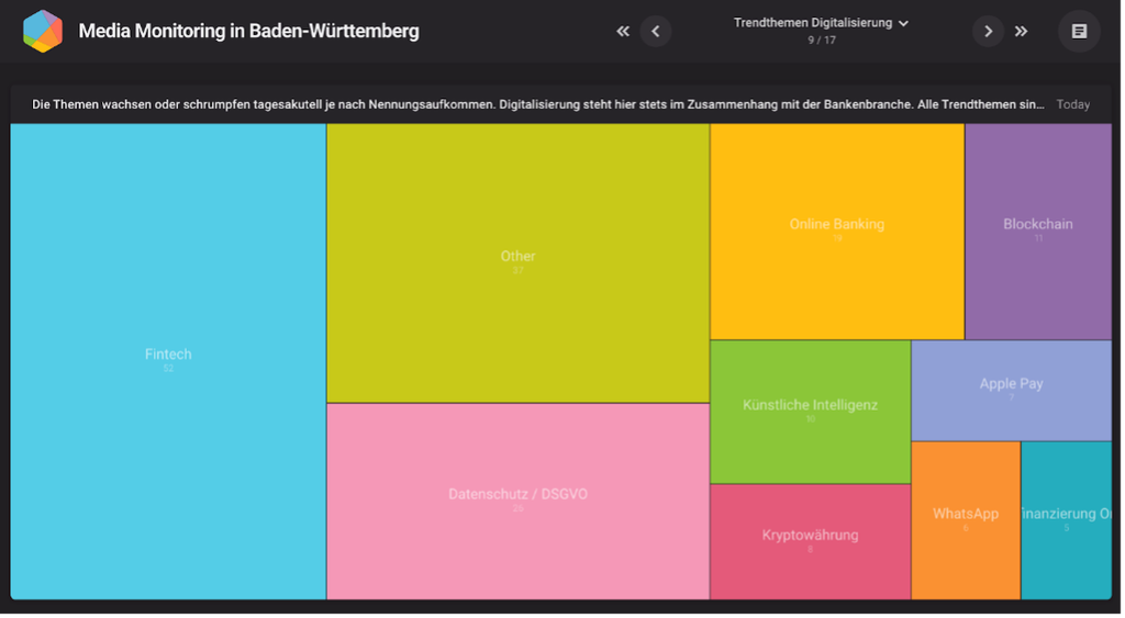 „Die Zeitersparnis für ein manuelles Monitoring ist immens. Gerade im Banken- und Finanzsektor kommt es oft auf schnelles und kundenorientiertes Handeln an. Dieses Live-Monitoring hilft dem Verband bei dieser Aufgabe im Wesentlichen bei der Transparenzschaffung des Medienechos für die Regionalbanken in Baden-Württemberg.“