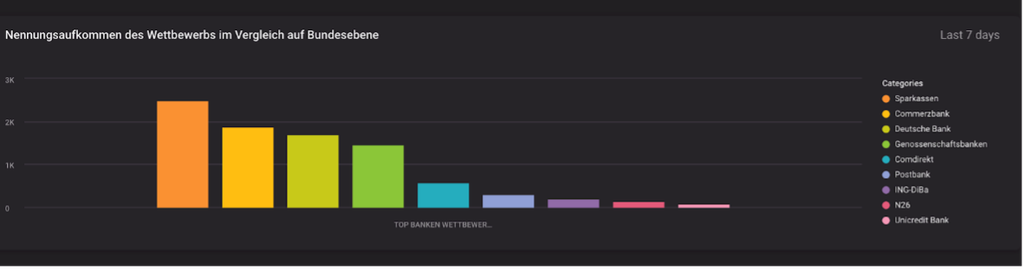 Julian nutzt Consumer Research, um bei negativen Meldungen auf die einzelnen Banken zuzugehen, und Vizia, um einen Überblick für sich und die Mitgliedsbanken zu erlangen. Hierzu ist die Tonalitätsanalyse der entscheidende Faktor. Im Hintergrund werden die aufkommenden Meldungen eigenhändig auf die Tonalität geprüft, um eine kontrollierte Analyse zu erhalten. Die Gesamttonalität ist das Ergebnis der Analyse und zeigt, wie sich das Sentiment in den jeweils letzten sieben Tagen verhält. Der Zeitraum von sieben Tagen wurde nach mehrmaligem Evaluieren ausgewählt, um die Aktualität sowie den Fokus auf eine übersichtliche Datenmenge zu gewährleisten.