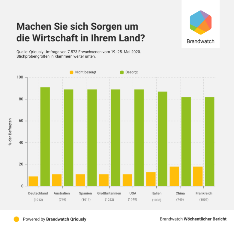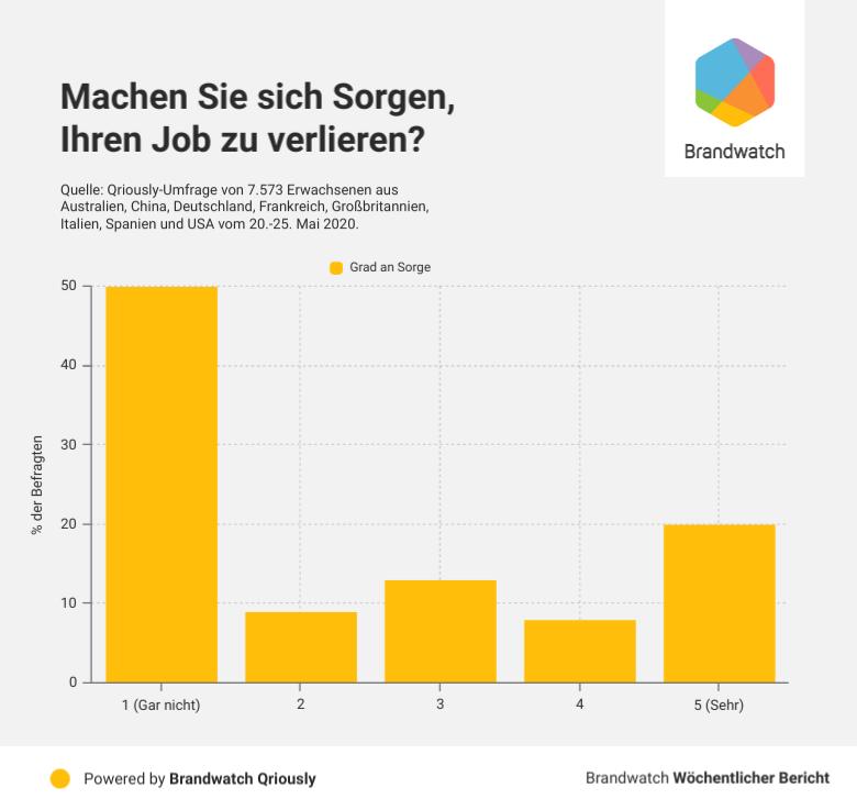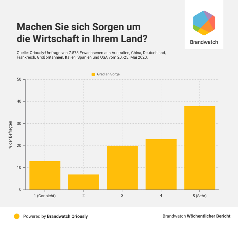 Nur 13% der Befragten gab hier an, dass sie sich gar nicht um die Wirtschaft ihres Landes Sorgen machen. Fünf Wochen zuvor waren es 10% der Befragten. Das könnte ein Hinweis darauf sein, dass Menschen wieder mehr Vertrauen und Zuversicht gewinnen.