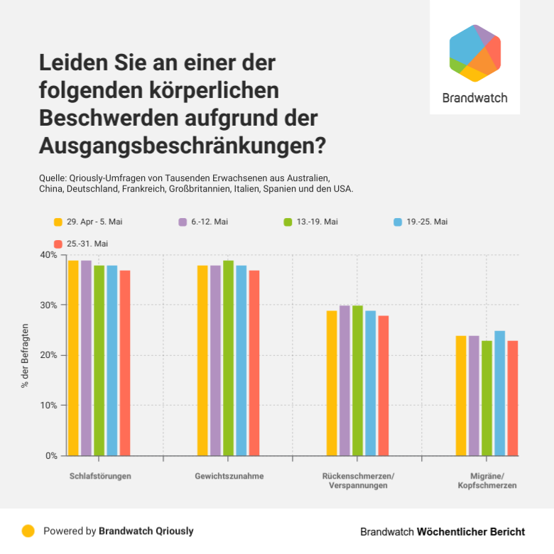Da sich China in der Kurve vor den anderen untersuchten Ländern liegt, haben die Probleme, die Menschen während des Lockdowns hatten, mittlerweile abgenommen. Das sind gute Aussichten für Menschen, die gerade an körperlichen Beschwerden leiden.