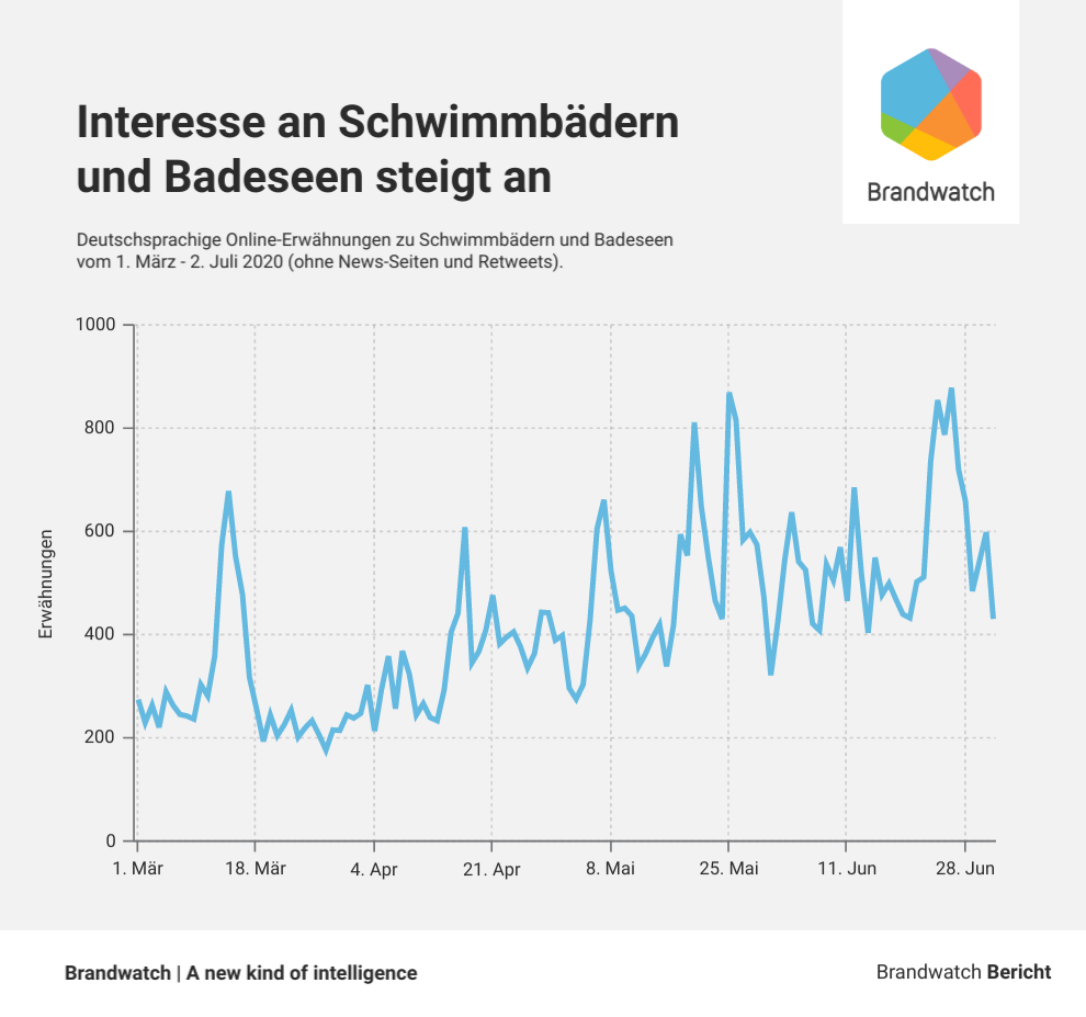 Die Temperaturen steigen, der Sommer ist da und die Sehnsucht nach einer nassen Abkühlung, die viele mit Sommer verbinden, wird immer größer: Freibäder und Badeseen. Mit Lockerungen der Kontaktbeschränkungen und Ungewissheit bei fernen Urlaubsreisen, zieht es viele bei sonnigem Wetter an den See oder das städtische Freibad. Wir haben uns dazu die Online-Gespräche näher angesehen.