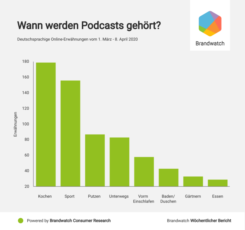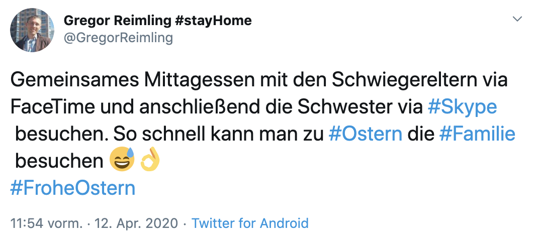Allerdings fragten sich viele, wie sie dieses Ostern feiern können. In den letzten zwei Wochen gab es über 104.000 deutschsprachige Erwähnungen rund um Ostern, Familie und Social Distancing. Über die Feiertage stiegen die Gespräche hierzu über 180% an. Eine Aufteilung der Erwähnungen in positive und traurige Äußerungen zeigt, dass die meisten Gespräche rund um Ostern positiver Natur sind: 82% der, mit einer Emotion kategorisierten, Erwähnungen enthalten frohe Begriffe und Emojis. Am Ostersonntag fanden mit Abstand die meisten positiven Gespräche statt. Die Online-Nutzer wünschten ihrer Community trotz allem ein schönes Osterfest und dass sie gesund bleiben mögen und sie aus dem Ostersonntag das Beste machen.