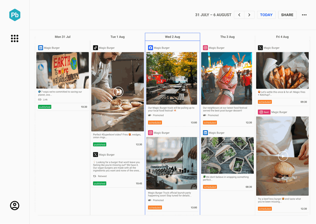 Wir wissen, wie es ist, mehrere Social Media Accounts gleichzeitig zu handhaben. Mit unserem Social Media Scheduling Tool können Sie all Ihre kommenden Social-Media-Inhalte über einen Kalender planen und veröffentlichen.