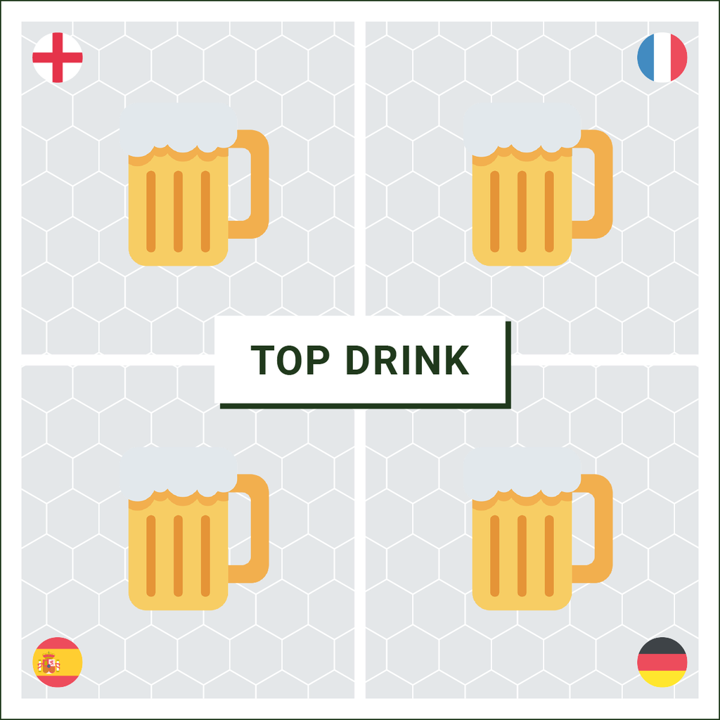 Wenn wir allerdings nicht gerade ein leckeres kühles Lager (oder ein anderes Bier) genossen haben, unterhielten sich die englisch und französisch sprechenden Tweeter darüber, dass sie Wasser trinken. In spanischen Gesprächen tauchten kohlensäurehaltige Drinks als zweites Getränk der Wahl auf, während deutsche Zuschauer davon sprachen, Vodka zu trinken. Na dann, Prost!