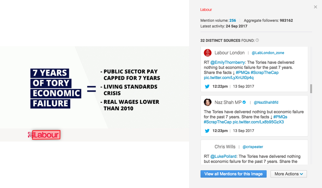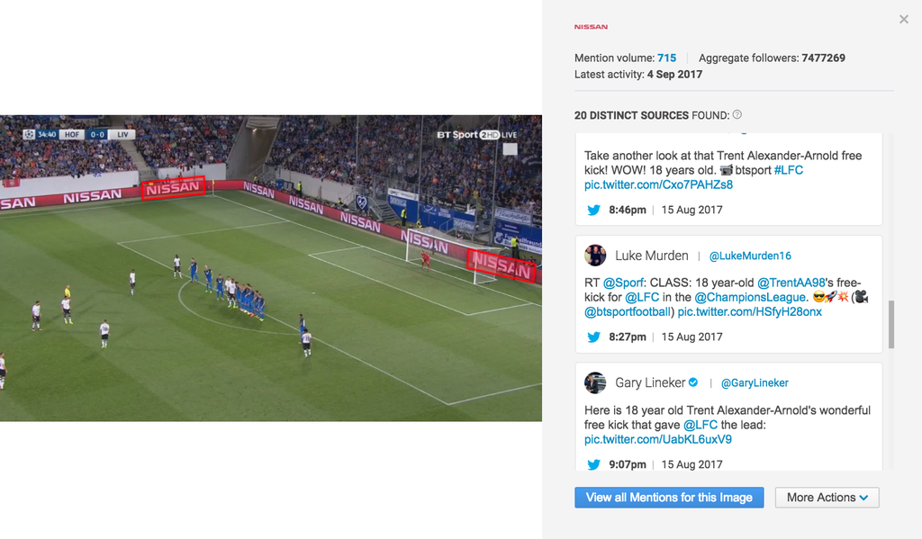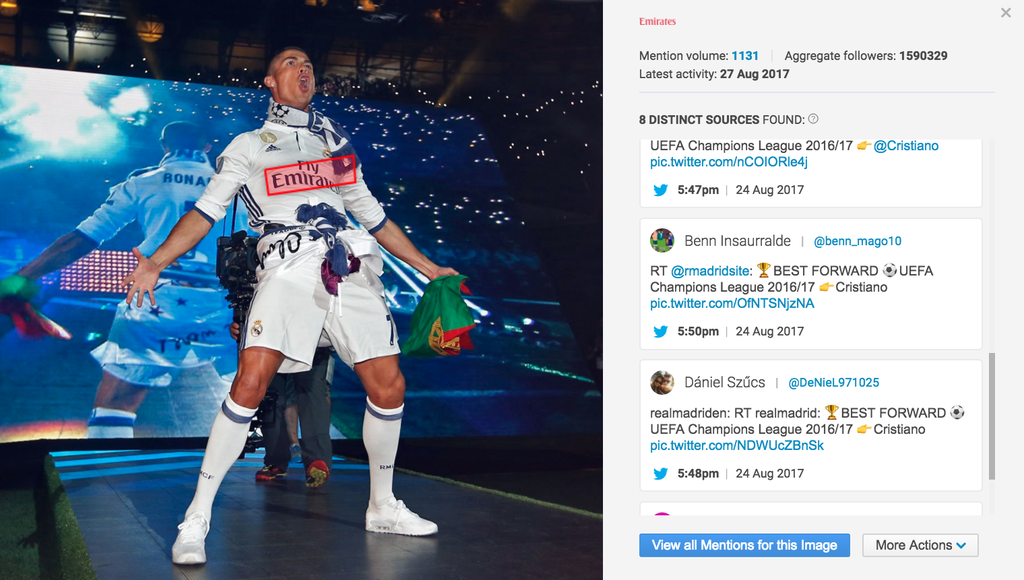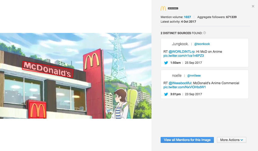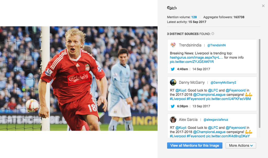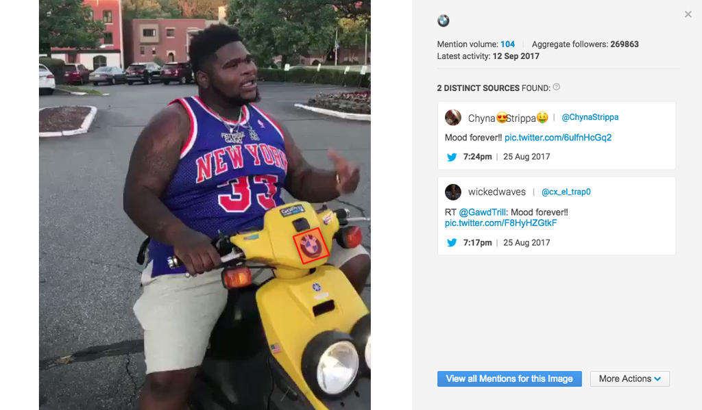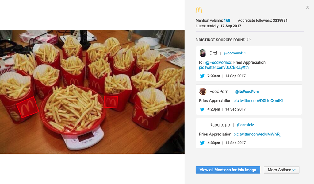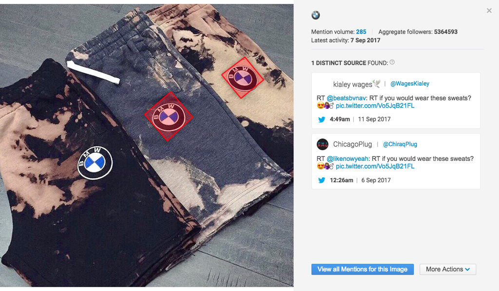 Logoerkennung: Brandwatch verwendet eine anpassbare maschinelle Lerntechnologie, um Logos in Bildern zu erkennen. Diese Technologie sucht nach einer Vielzahl an Eigenschaften, um jede Art von Logoplatzierung zu finden, darunter verzerrte, verschwommene, kleine und teils verdeckte Abbildungen.