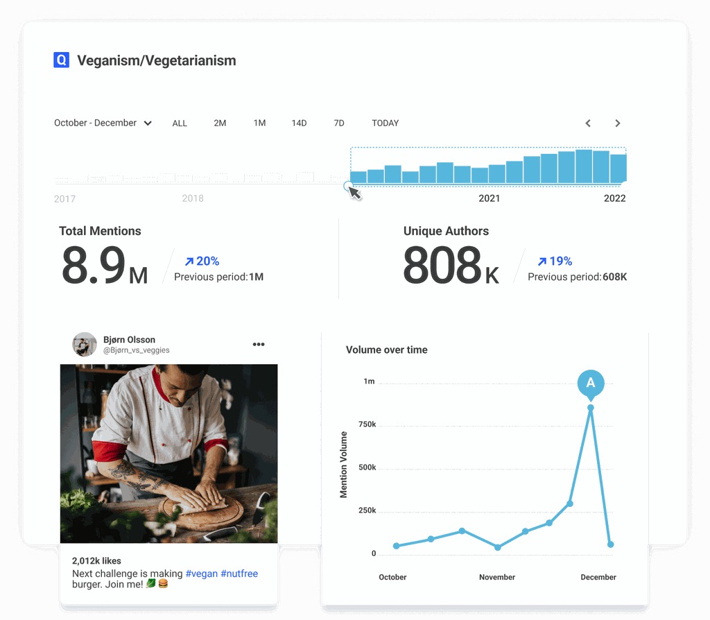 Bei Umfragen und Fokusgruppen kann es mitunter Wochen dauern, bis Ergebnisse vorliegen. Brandwatch-Nutzer:innen erhalten Daten in Echtzeit und unterstützen Sie dabei, immer am Puls der Zeit zu sein.