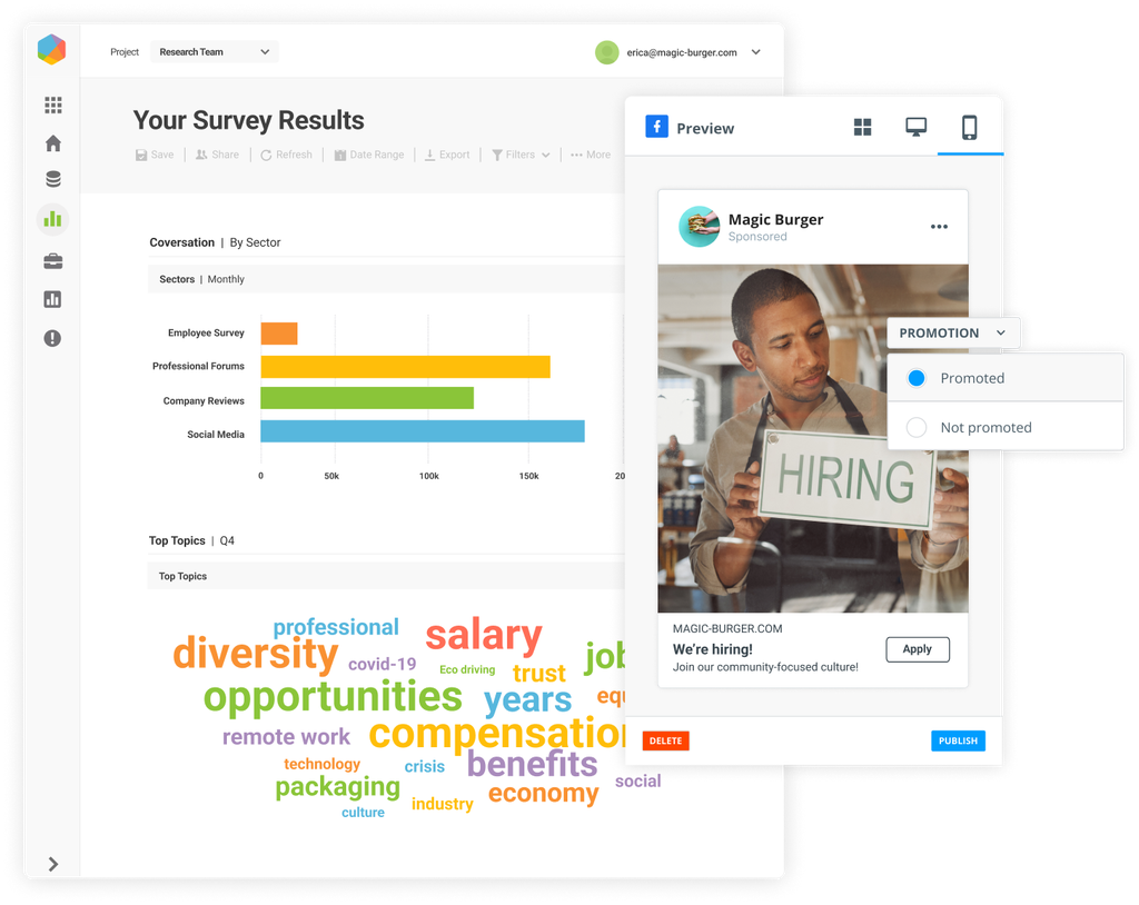 Nutzen Sie die KI-gestützte Analyse von Online-Daten, Bewertungen und Umfragen, um die Wirkung Ihrer Arbeit aufzuzeigen |