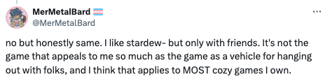 Whether playing with others, live-streaming gameplay, or discussing games on the r/CozyGamers subreddit, the community aspect of cozy games plays an important role in online chatter.