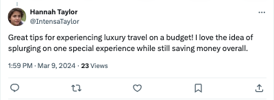 Meanwhile, consumers often talked about upgrading their flight tickets and hotel stays to prioritize comfort and convenience. Some people mentioned the products they buy to feel more luxurious, restful, and comfortable when traveling, including sleep masks, skincare, ear plugs, and travel pillows.