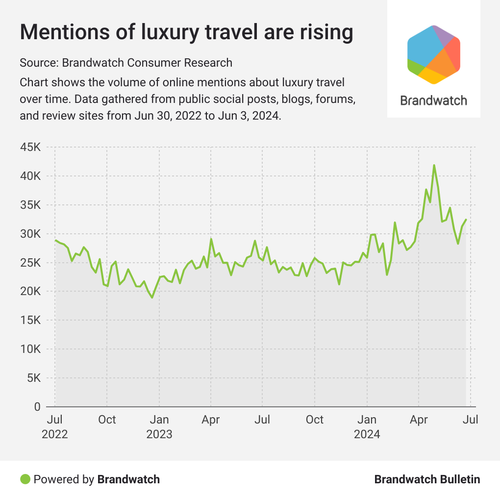 Mentions of dining in luxury travel discussions grew 28% in the first six months of 2024 compared to the same period in 2023.