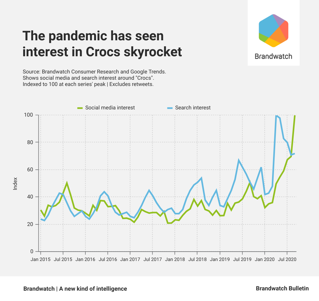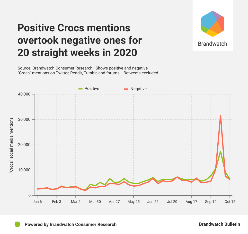 That week saw the most negative mentions of Crocs we’ve ever found in our data, going back to June 2010. The cause? Too many people wanted to buy them.