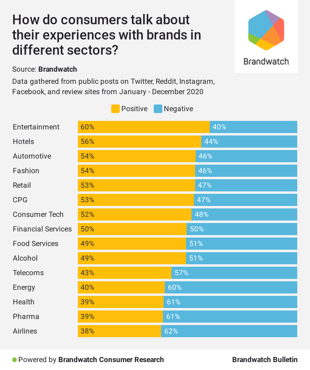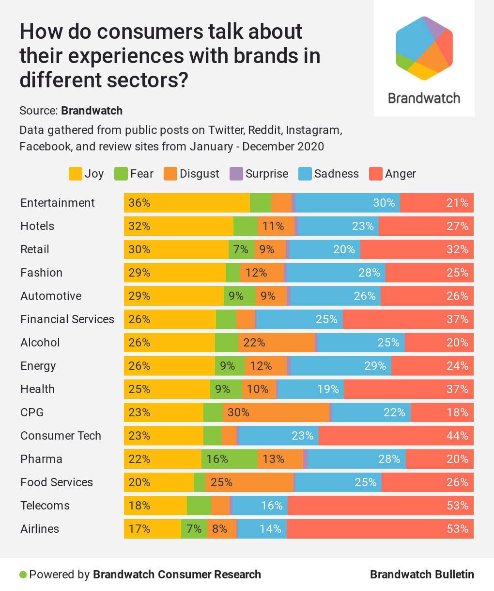 This emotion-led analysis also gives us better insight into how customer experience differs between sectors.