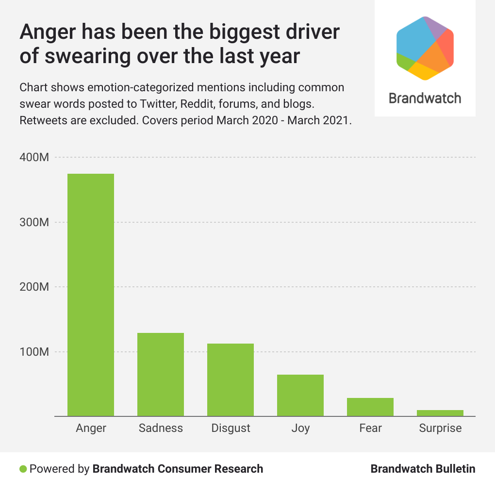 The data is very clear cut. Angry swearing made up 52% of the mentions we were able to emotionally categorize.