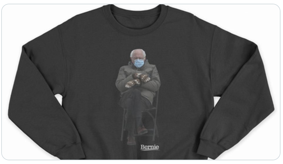 The event that made the biggest splash on these discussions online was, perhaps, surprisingly, the inauguration of President Joe Biden. But it wasn’t Biden that caused the spike – it was Bernie Sanders. After a photo of him wearing a pair of cosy-looking mittens went viral, his team turned the meme into a sweatshirt. It sold out immediately in all sizes.