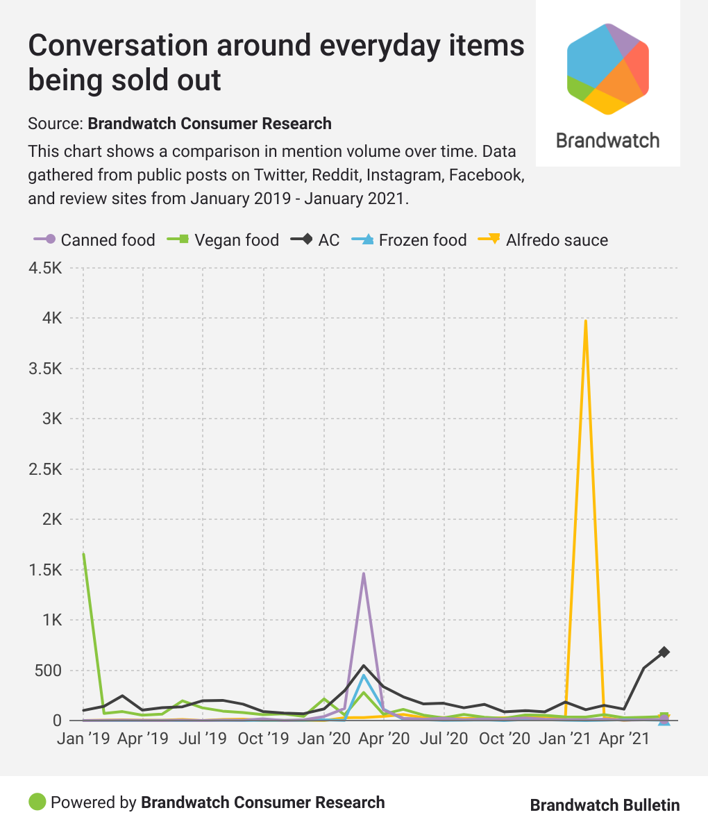 But it’s not our desire to cool off that triggered one of the biggest spikes in “sold out” conversation earlier this year. Instead, it’s demand for Alfredo sauce.