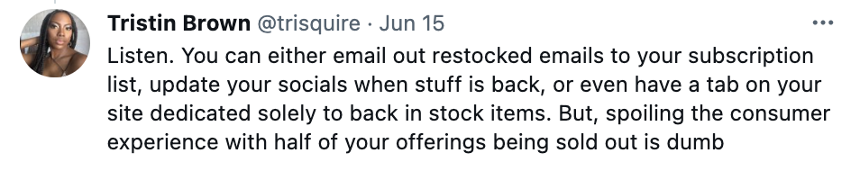 Consumers have high expectations and want a convenient experience. Taking items off your website if they’re sold out seems like a popular idea – it eliminates the time wasted navigating to products that aren’t available. In a competitive market, retailers who listen to their customer’s needs and pain points can differentiate themselves from the pack.