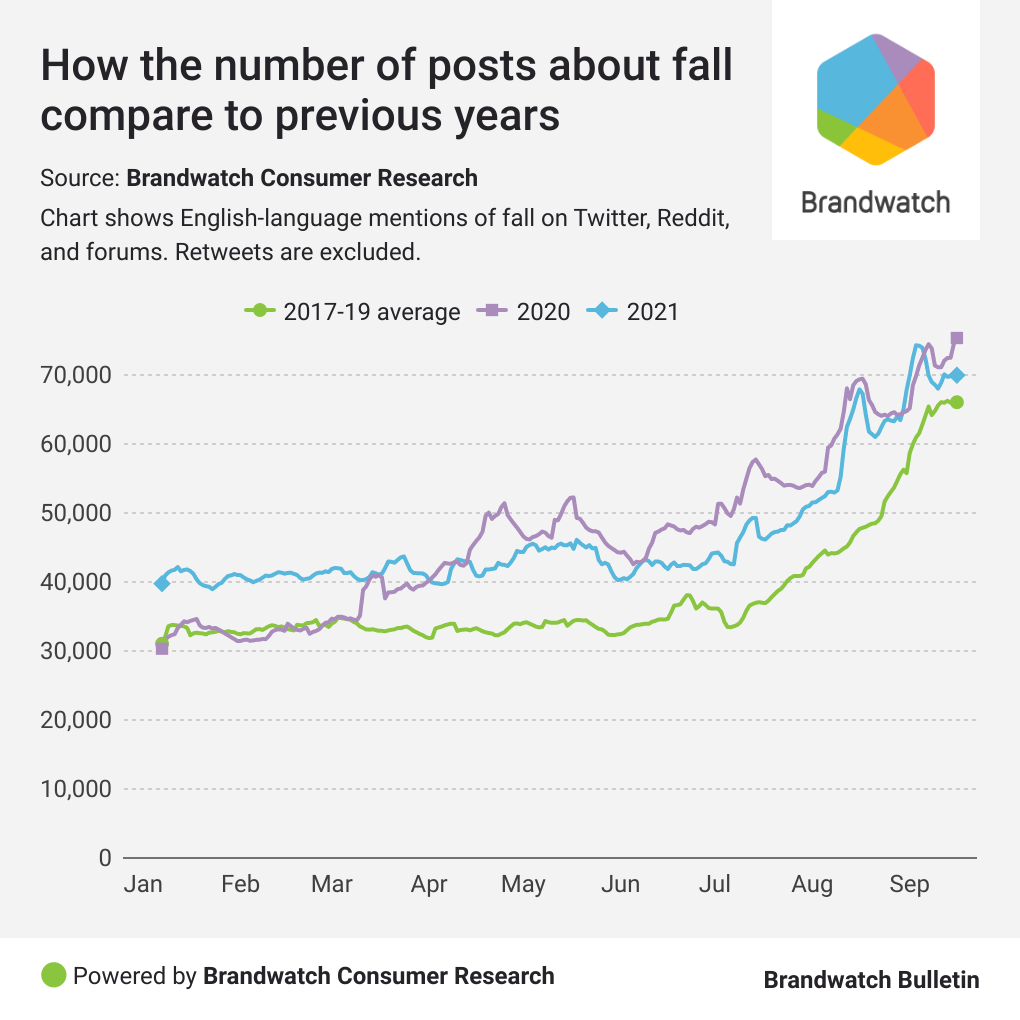 It would be tempting to say that people just like discussing fall more than they did a few years ago, whether they’re pro or against. But, as with most topics, Covid-19 is influencing the data.