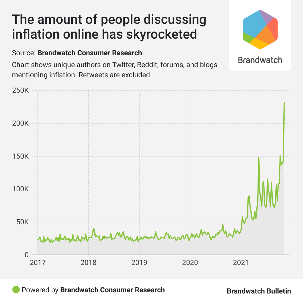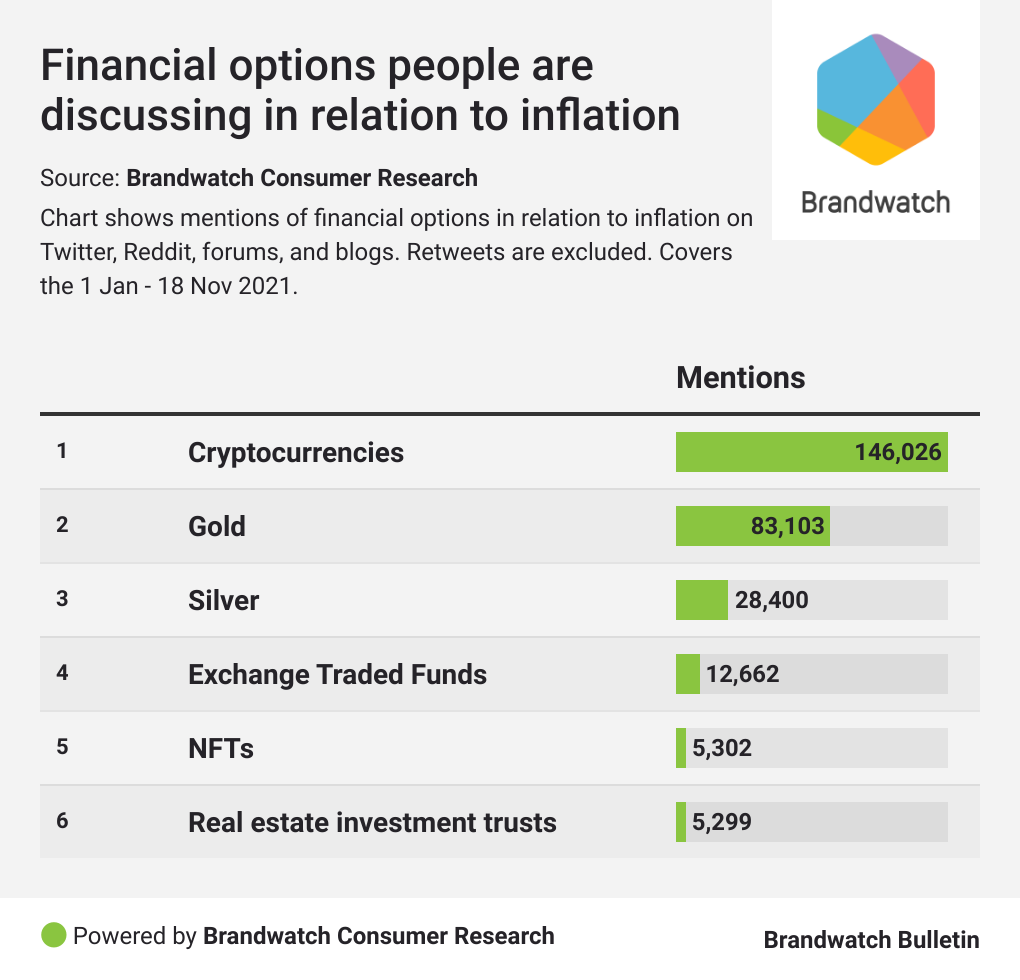 One of the biggest topics in the whole inflation conversation this year has been Bitcoin, which, without including mentions of cryptocurrencies in general, would still have topped our table.