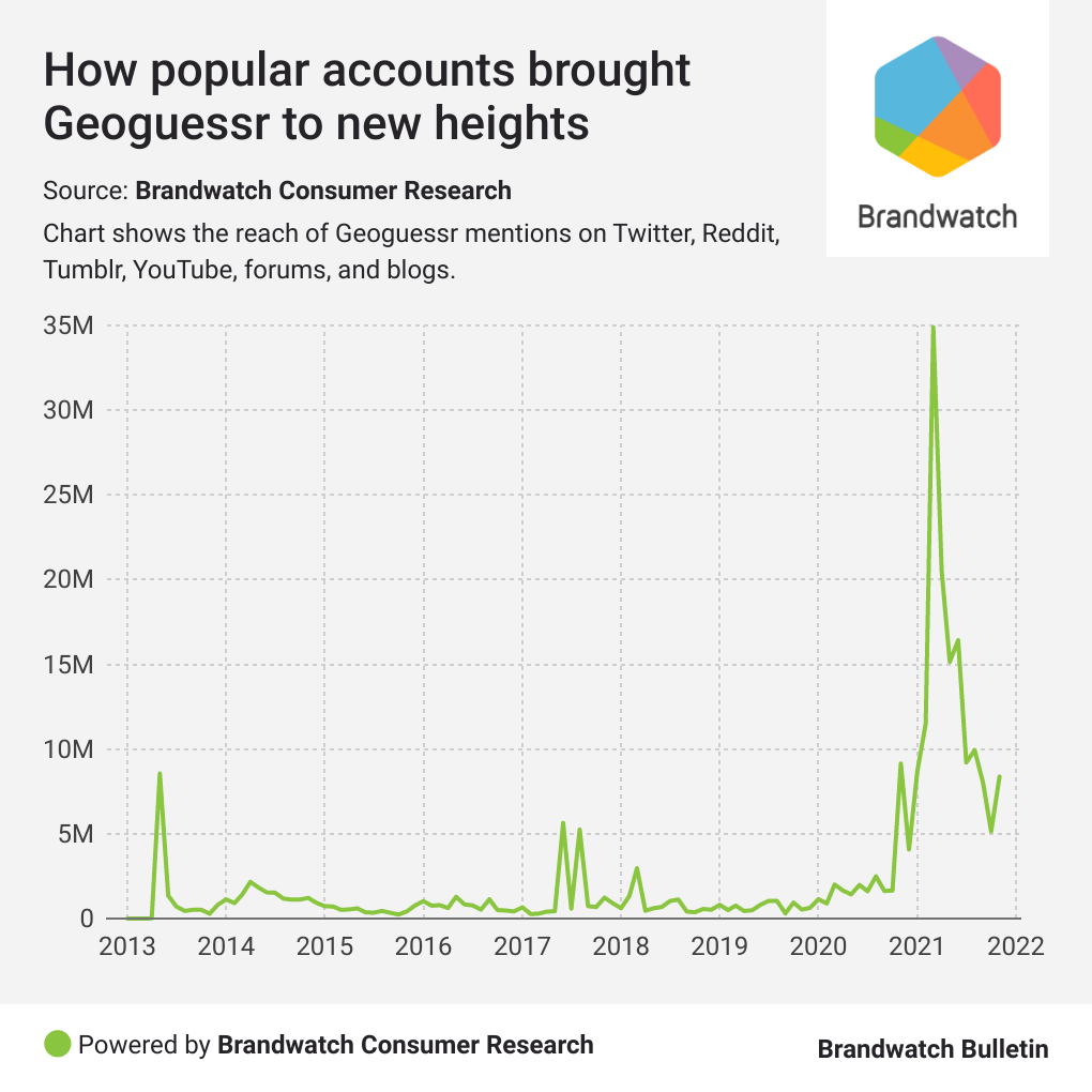 We think there are two main reasons. The first is that when lockdowns forced us to socialise virtually, we looked for games to play with each other, a topic we covered in a previous bulletin. GeoGuessr was another game that we found ourselves playing at the time.